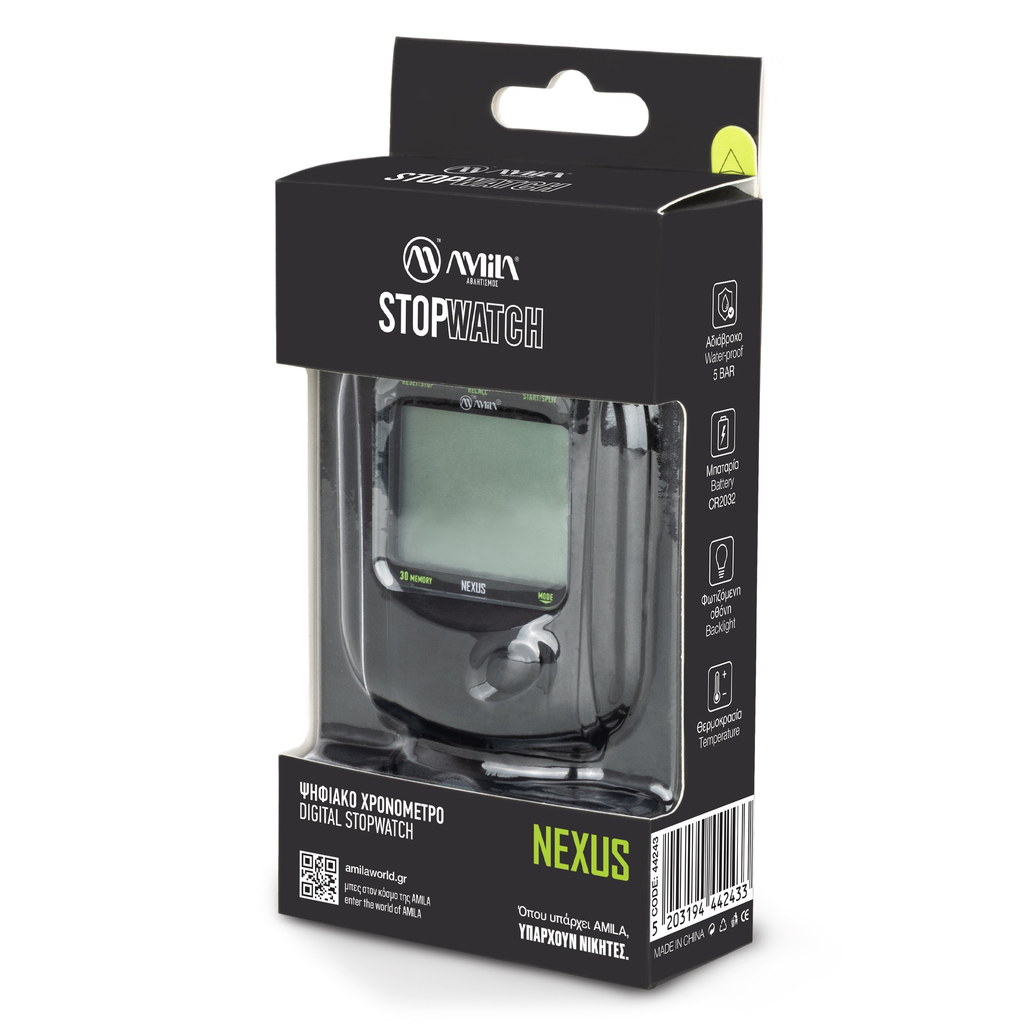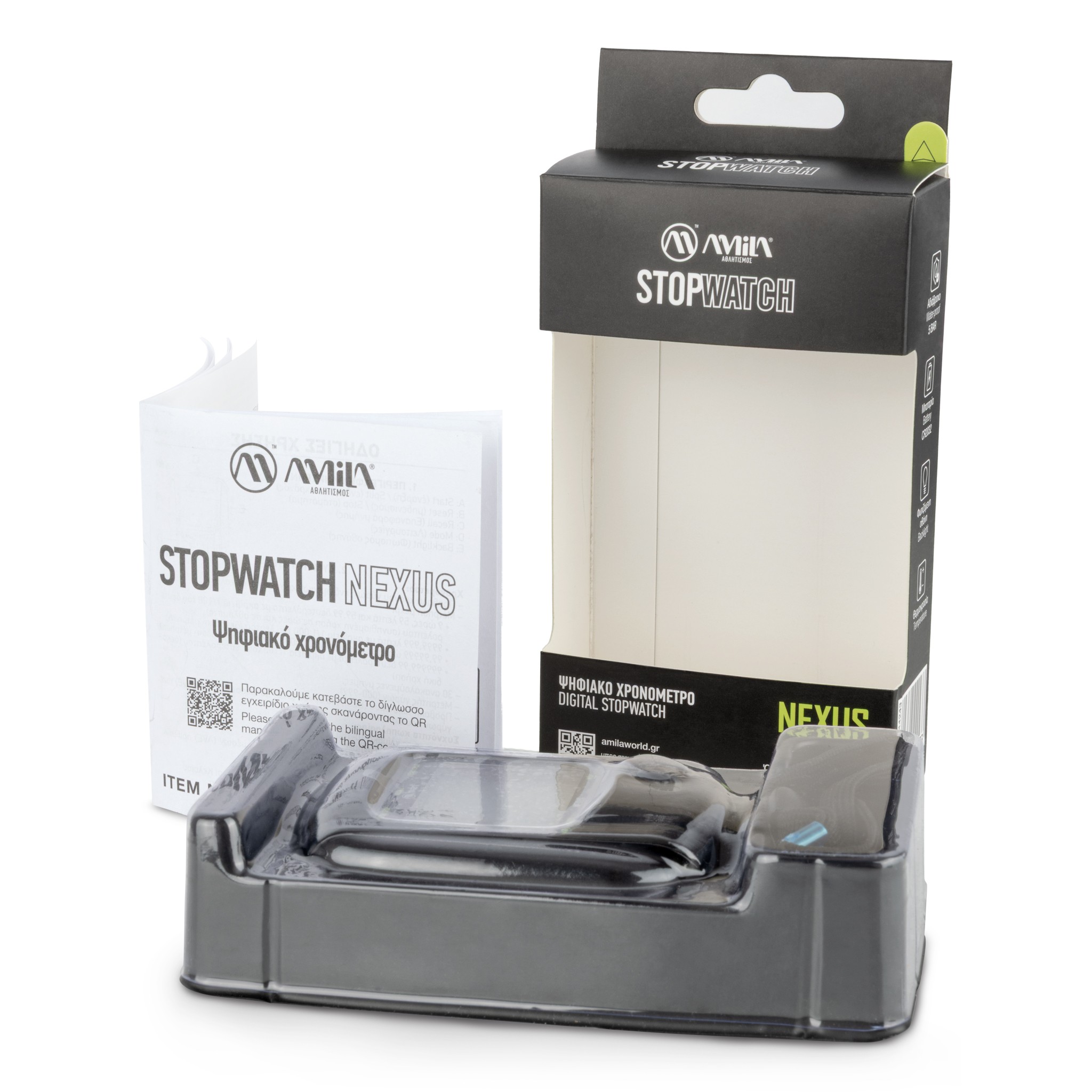 Το AMILA Nexus είναι ένα επαγγελματικό ψηφιακό αδιάβροχο χρονόμετρο που ανεβάζει τον πήχη στην ακρίβεια και στη λειτουργικότητα. Με ακρίβεια 1/100 δευτερολέπτου και δυνατότητα χρονομέτρησης έως 100 ώρες, καταγράφει με συνέπεια κάθε προσπάθεια, γύρο και split σε προγράμματα υψηλής έντασης. Η φωτιζόμενη οθόνη εξασφαλίζει την αναγνωσιμότητα σε συννεφιασμένες ή νυχτερινές προπονήσεις, ενώ η αντοχή στο νερό το καθιστά ιδανικό για χρήση σε εξωτερικό χώρο και demanding sports όπως το τρέξιμο, η κωπηλασία ή η κολύμβηση.