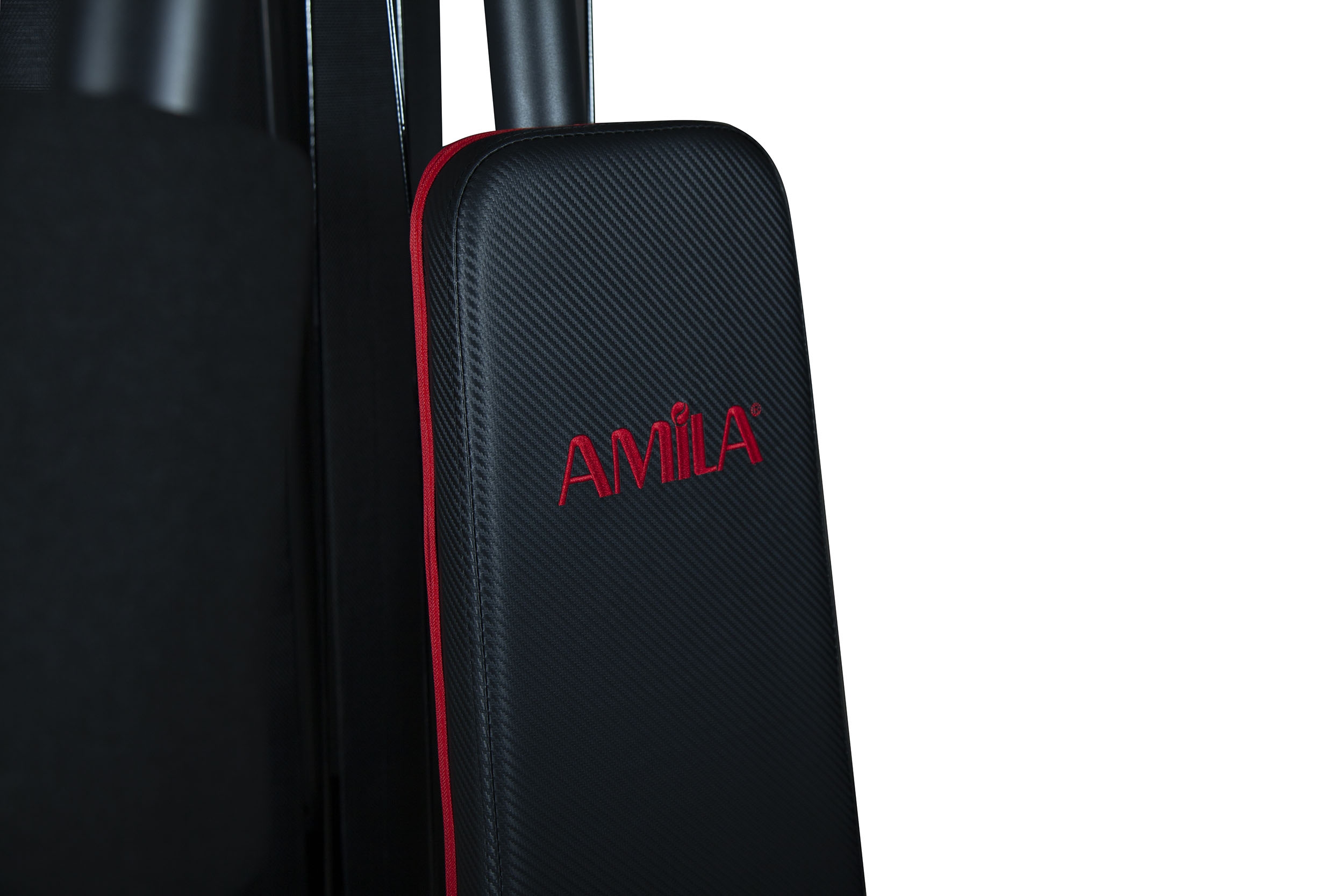 - Το πολυόργανο της AMILA HG187F, ανήκει στην κατηγορία των οικιακών πολυοργάνων. Ενσωματώνει πολλές ασκήσεις, ενώ τα περίπου 45 κιλά πλακών βάρους, είναι αρκετά για κάποιον που θέλει να ξεκινήσει γυμναστική. Διαθέτει προστατευτικό πλέγμα γύρω από τα βάρη, και σύστημα κλειδώματος (και λουκέτο) των βαρών για προστασία των παιδιά.Διαθέτει Pec Deck, σύστημα εκγύμνασης ποδιών, και σύστημα προσάρτησης αξεσουάρ ψηλά. Μαζί περιλαμβάνονται, μια μεγάλη μπάρα για ασκήσεις πλάτης, μια μικρή μπάρα, ιμάντας αστραγάλου, και λαβή μονή.